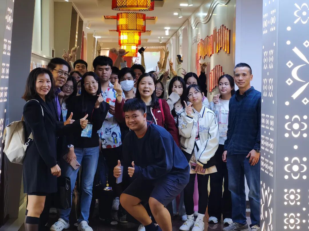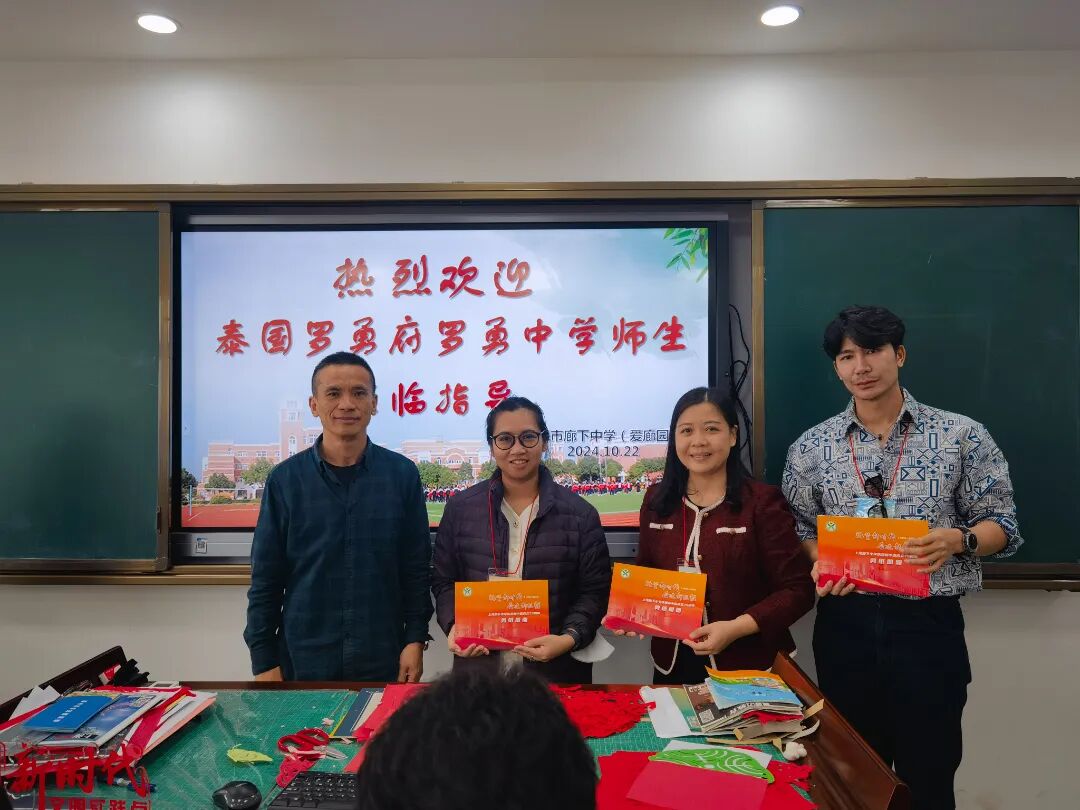2024年10月22日上午,泰国罗勇中学师生一行35人,怀着对中华文化的浓厚兴趣,到访了爱廊园。政教主任杨金连老师全程陪同接待,为他们精心安排了一场文化体验之旅。