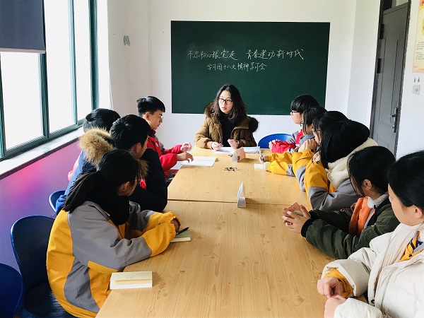 2019年1月3日中午,校学生会中心组成员在学生会办公室开展“不忘初心跟党走,青春建功新时代”团十八大精神学习会。参加本次会议的有学生会主席团和各部门部长,会议由团委书记谢孜主持。