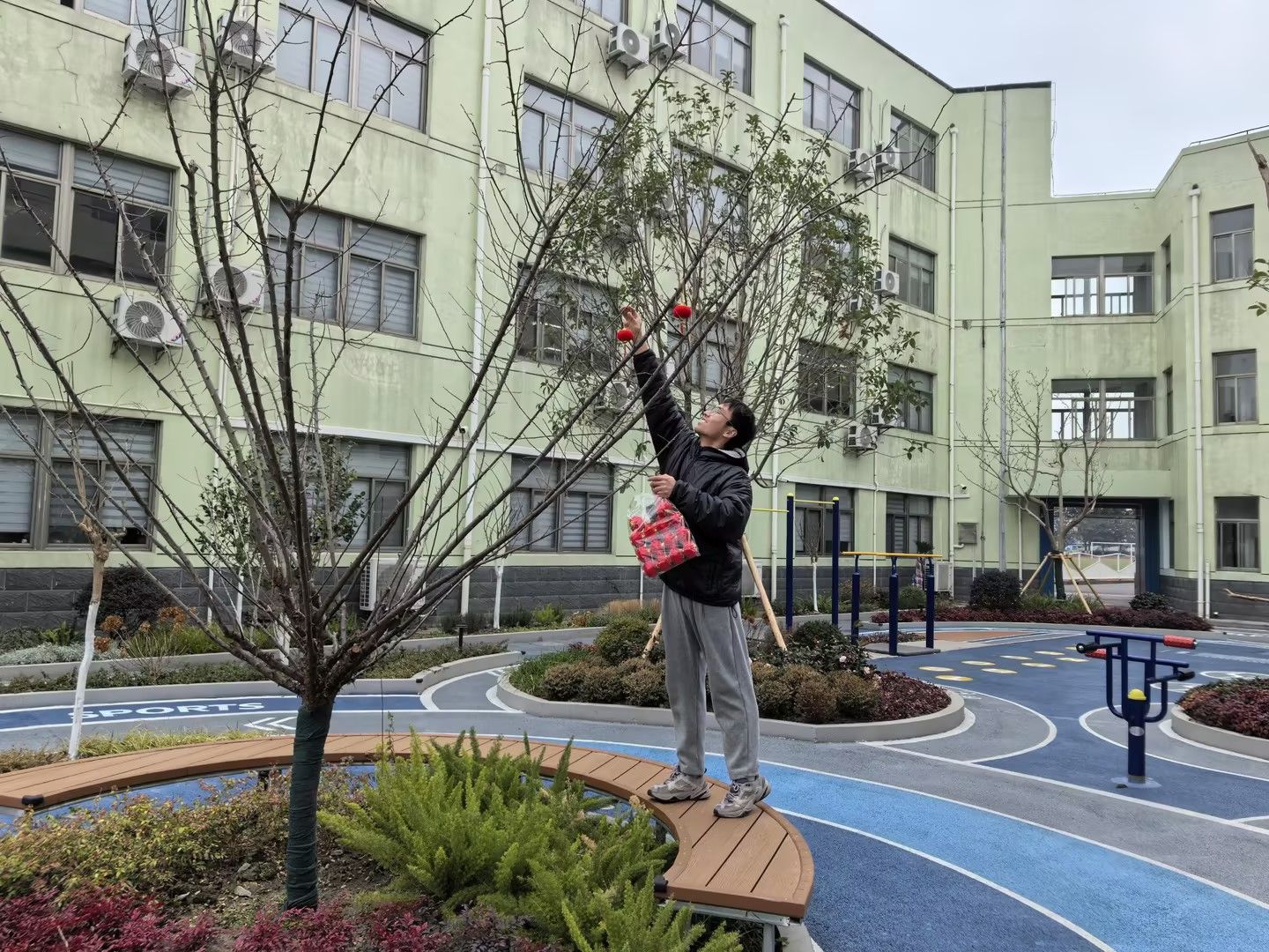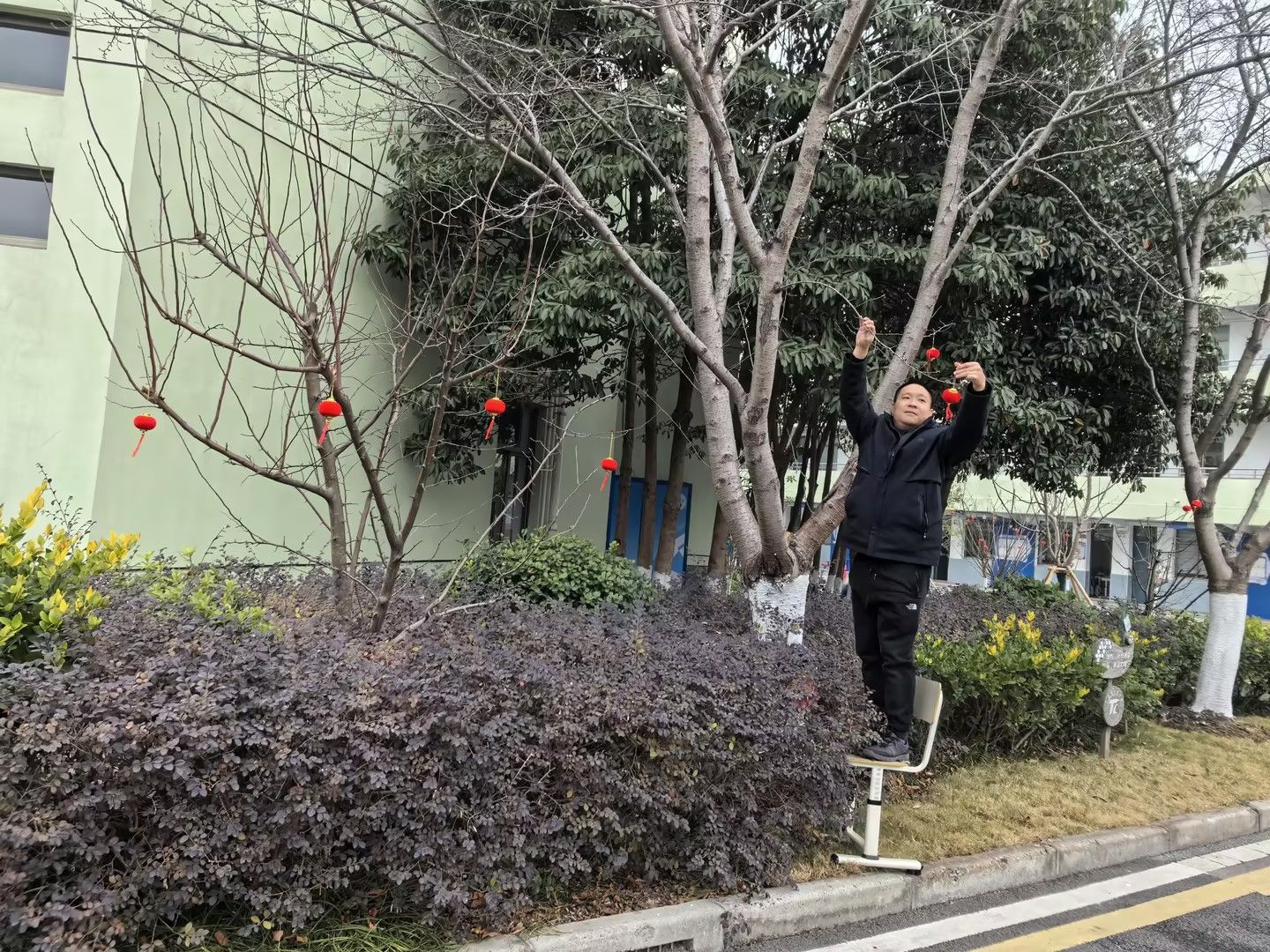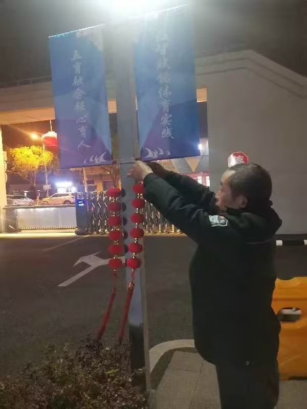 为迎接新春,学校后勤人员精心装扮校园,一盏盏象征团圆吉祥的红灯笼高高挂起,红映门楣。大家搭梯悬挂、细心布置,灯火亮起时,整个校园皆是喜庆祥和,也寄托着新一年红红火火、学业精进、万事顺遂的美好祝愿。