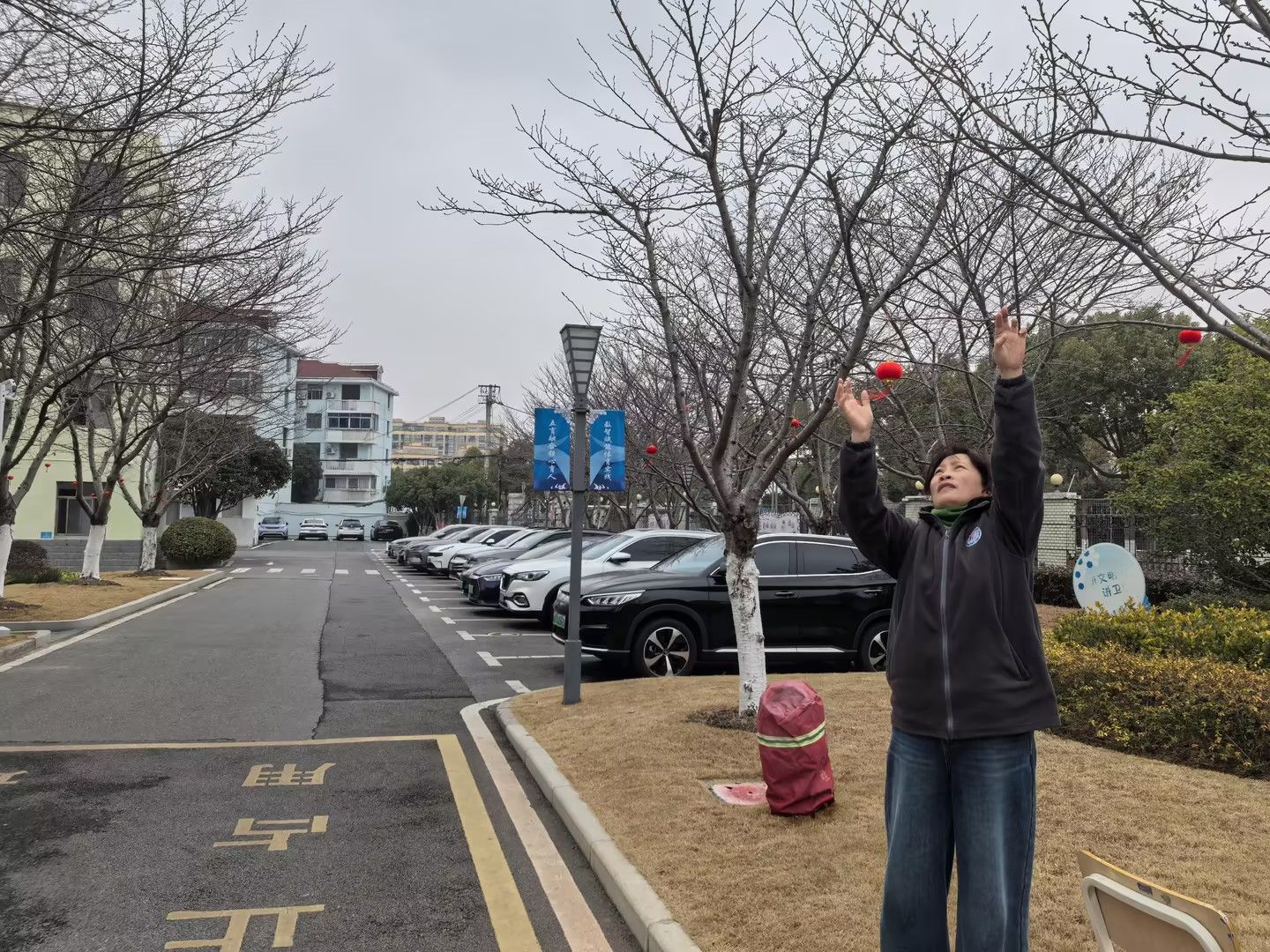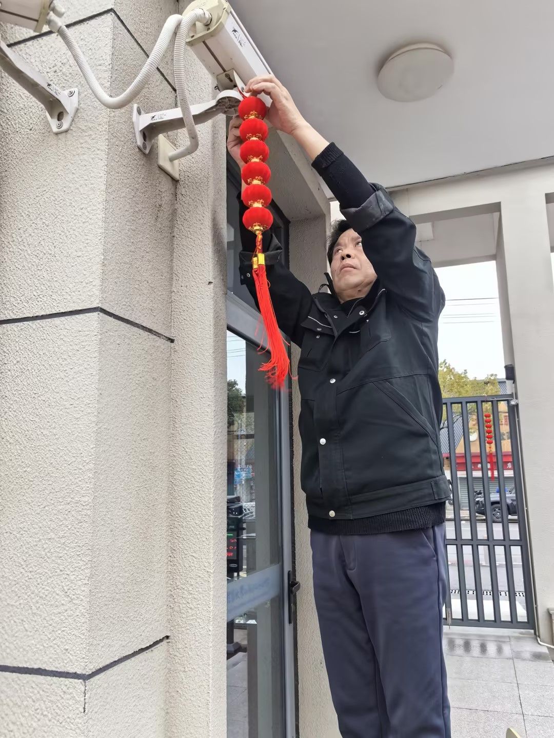 “往左一点,再高一点,对对对,这样挂起来才喜庆!”