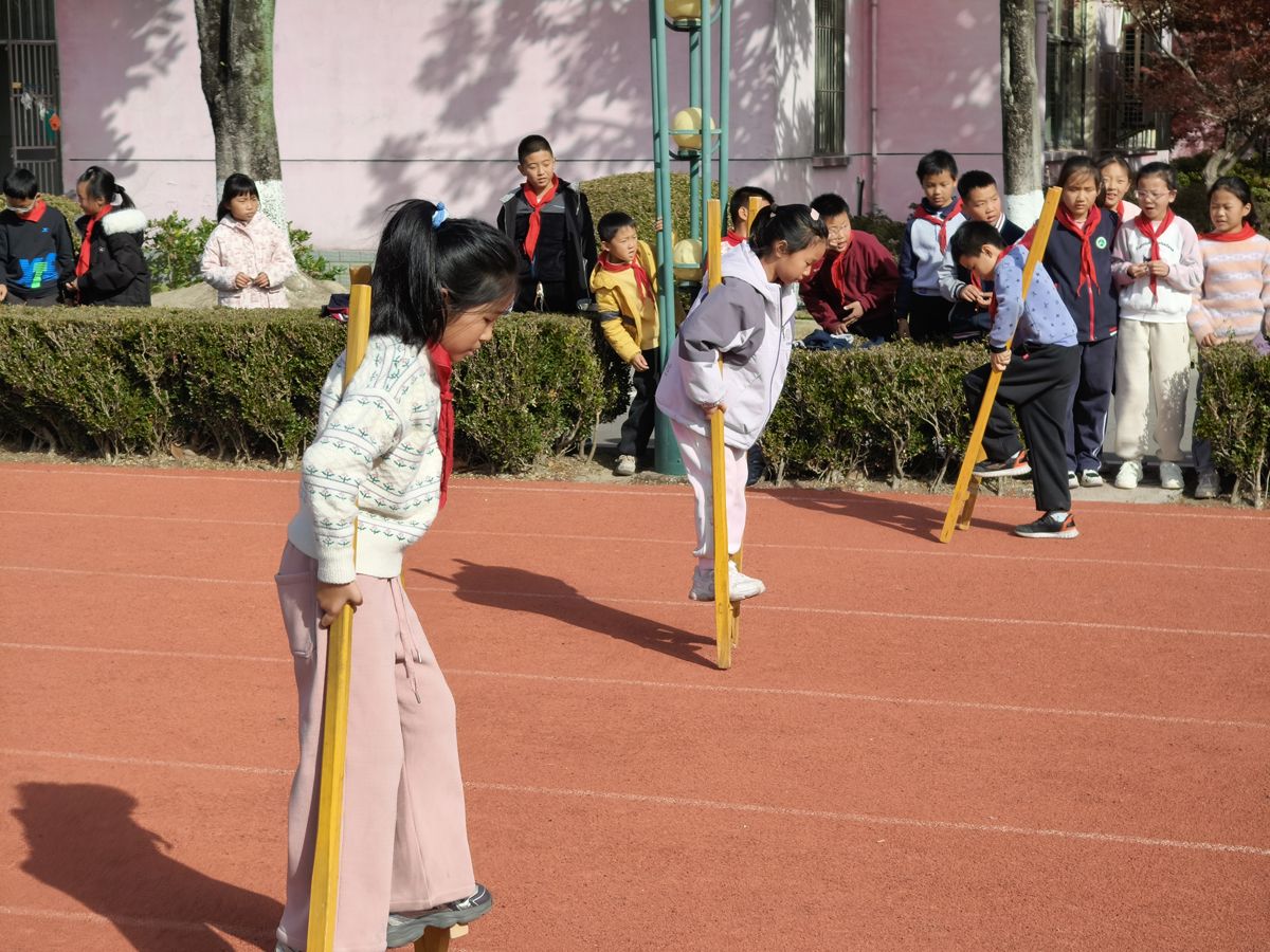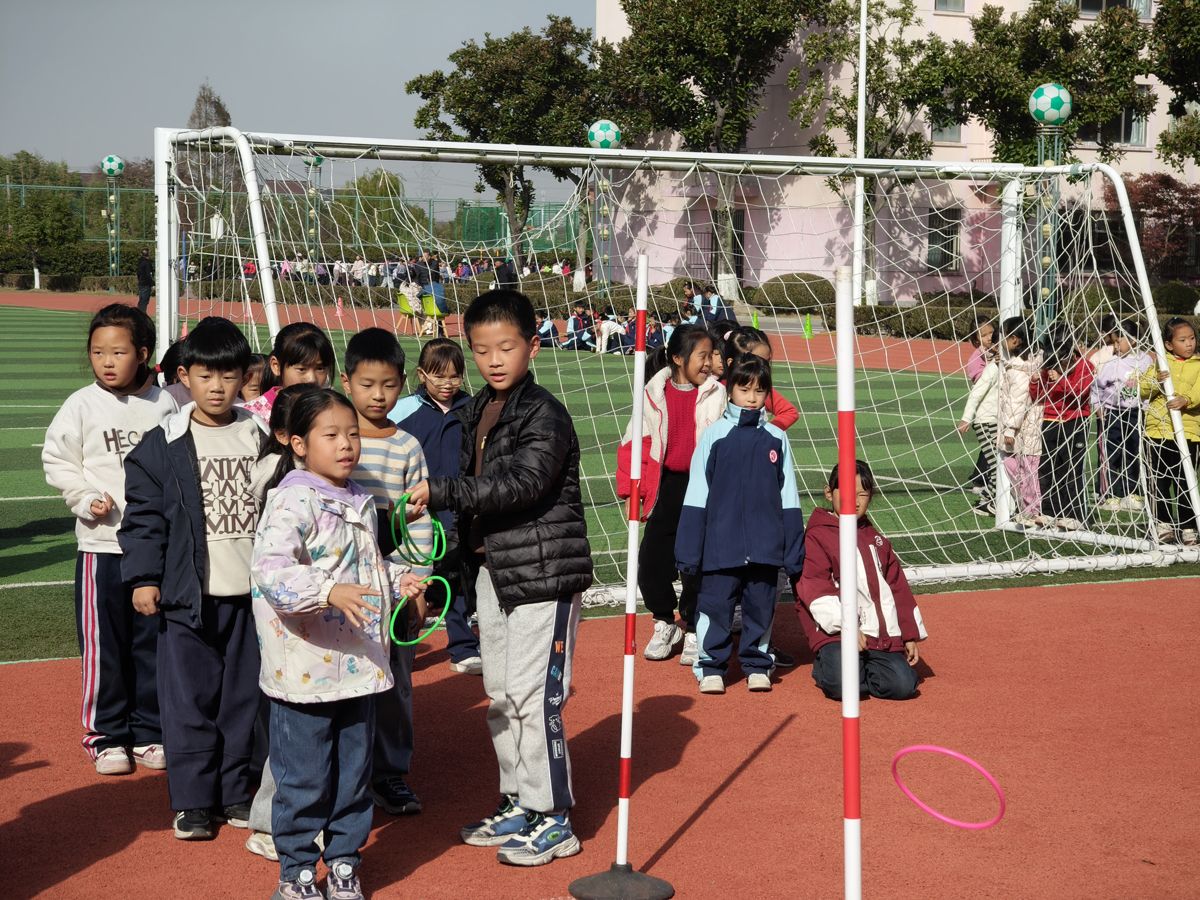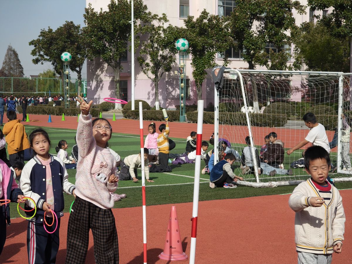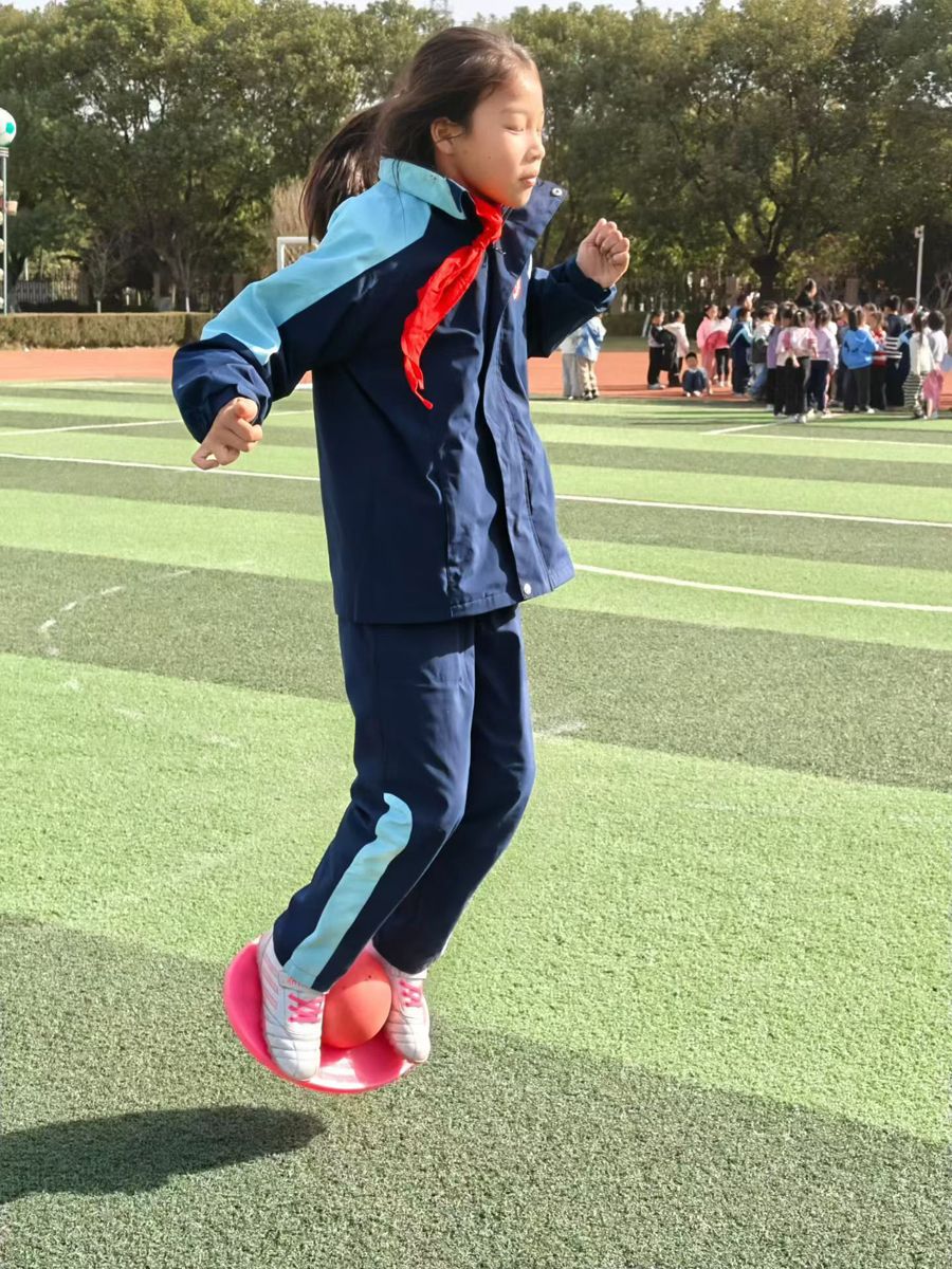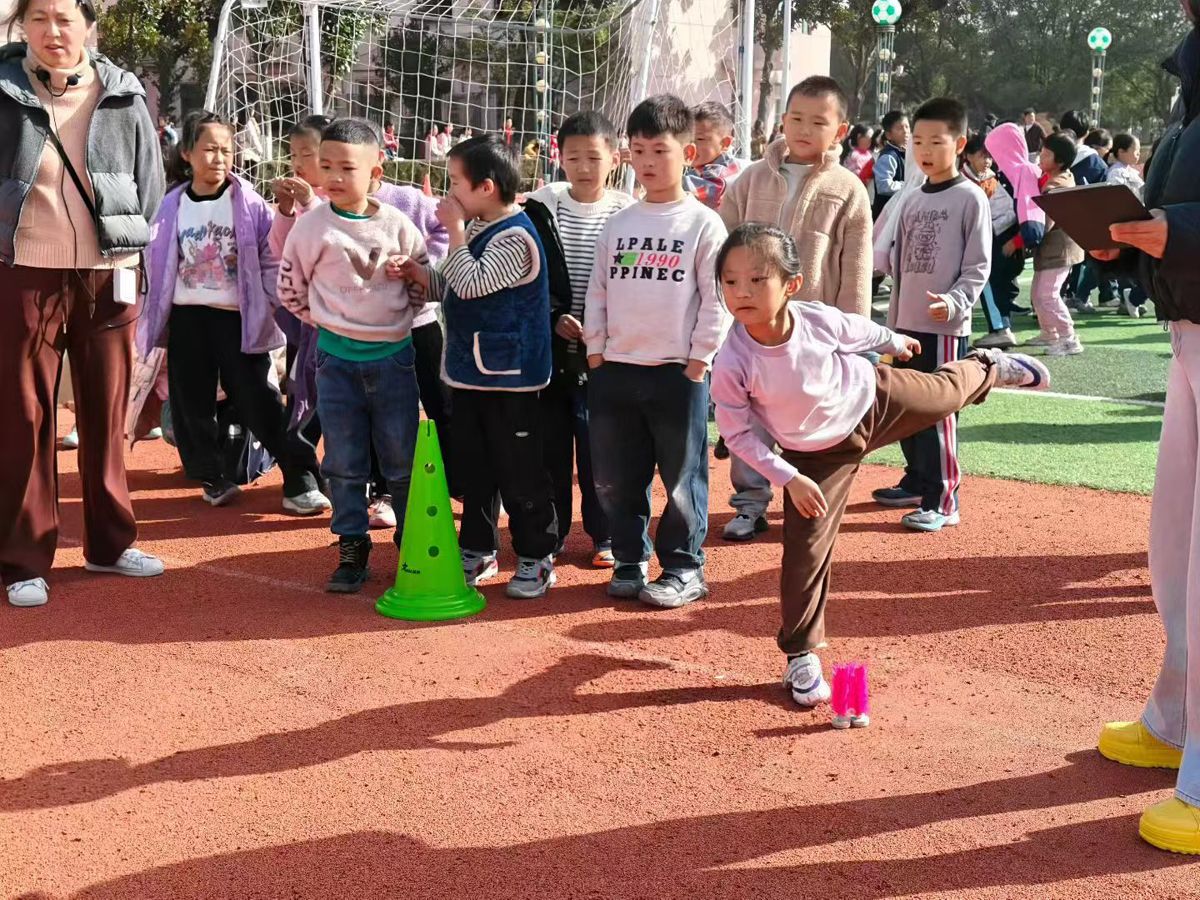 扔毽球赛场边,孩子们踮着脚尖、眼神专注,彩色的毽球在脚尖与掌心间灵活翻飞;踩高跷区域堪称“技巧担当”,同学们从摇摇晃晃到稳步前行,每迈出一步都能引来围观同学的阵阵欢呼;套圈场地前排起了长队,孩子们屏息凝神瞄准目标,手腕轻扬将圈抛出;滚铁环项目则满是复古韵味,学生们弓着腰、扶着铁环杆,让铁环在地面划出平稳的弧线;最热闹的当属跳跳球接力,队员们双腿夹住彩色跳跳球,像一只只活泼的小兔子蹦跳前行,接力棒传递的瞬间,班级啦啦队的呐喊声几乎要掀翻操场,整个赛场成了一片欢乐的海洋。