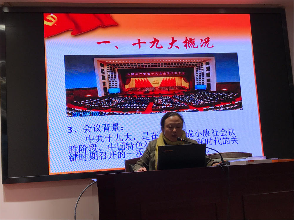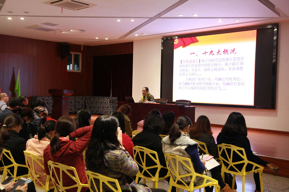 深入学习贯彻党的十九大会议精神,凝聚学校发展正能量,11月13日,学校在五楼多功能室组织全体教职工学习宣传贯彻党的十九大精神。