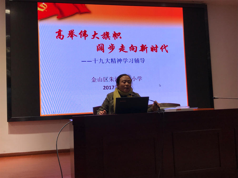 支部书记、校长孙翠英上了题为《高举伟大旗帜,阔步走向新时代》党课,党课围绕共产党人要不忘初心;共产党人要牢记使命;共产党人要学习党的最新理论成果;共产党员要听从十九大的号角;共产党员要为办好金山教育而努力五个方面进行解读,通过解读,使全体教职工对十九大报告有了进一步的理解。