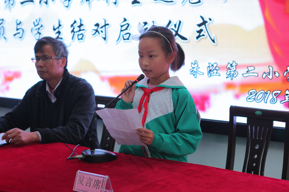 活动开始,首先由支部委员朱保弟宣读《朱泾二小党支部与七彩学生帮扶名单》,接着由支部委员、工会主席王春根宣读《朱泾二小党支部与七彩学生帮扶结对活动实施方案》,在方案中落实具体帮扶措施为:(1)谈心每月1-2次;(2)课余时间对某一学科进行无偿辅导;(3)购买相关的学习资料及学习用具。其次,学生代表盛珺妍发言,她代表全体队员表示,我们一定会更加勤奋刻苦,争取以更优异的成绩回报学校、回报社会,决不辜负老师老师对我们的关心和学校寄予我们的期望,学会感恩,学会回报,让人间处处洒满真情。党员代表缪永利代表全体党员承诺,让我们用爱去呵护每一个有效地心灵,让我们用爱去温暖每一个孤独的身影。让我们用自己的一颗爱心,用自己的一个行动去为孩子们营造一个温暖而和谐的大家庭。