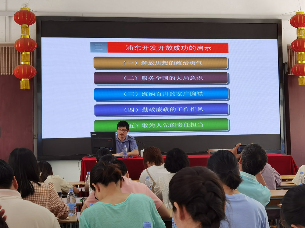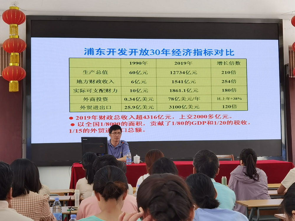 8月27日上午,我校党支部邀请了中国浦东干部学院教学研究部的林存华博士,为我校党员做关于《浦东开发开放史:中国特色社会主义的生动探索》专题讲座。讲座由书记孙翠英主持。