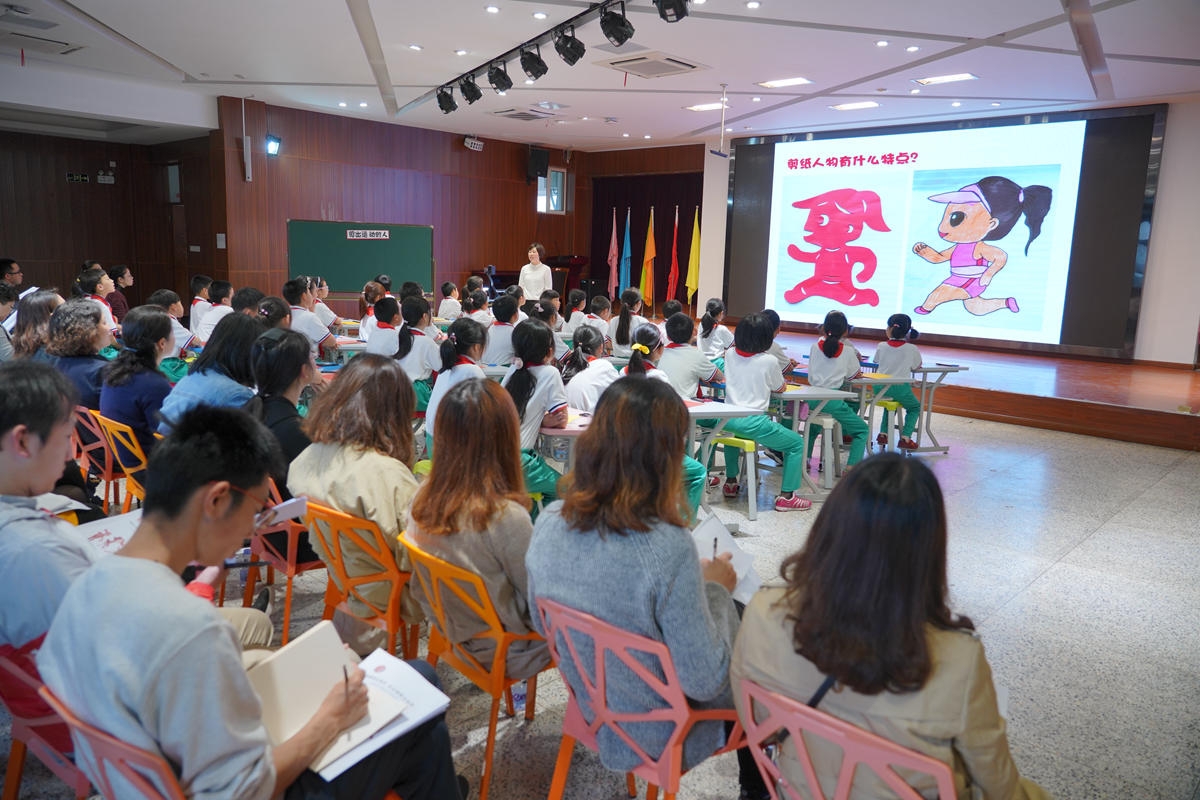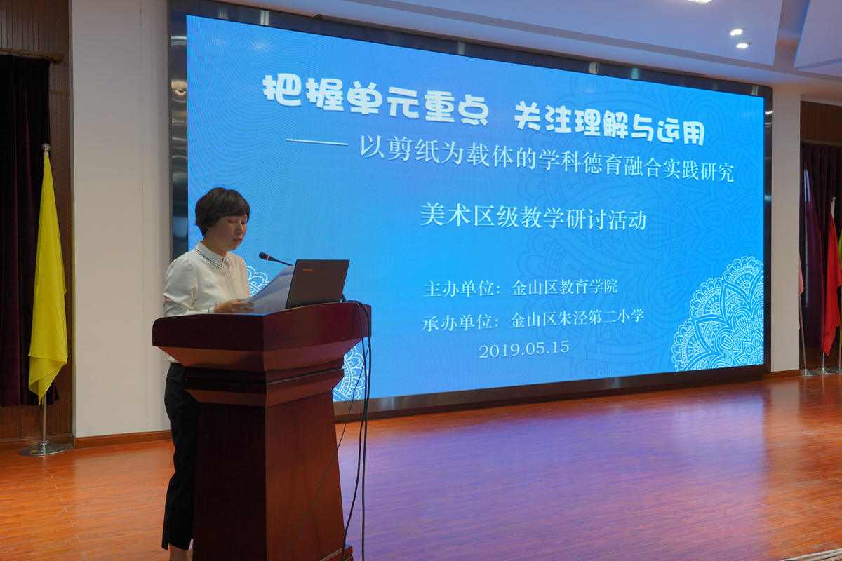 5月15日下午,把握单元重点 关注理解与运用——以剪纸为载体的学科德育融合实践研究的区美术教研展示活动在我校举行。参与活动的有区小学美术教研员顾春燕老师、区骨干教师、各小学美术教研组长、0——5年美术青年教师,共50人参与本次活动。