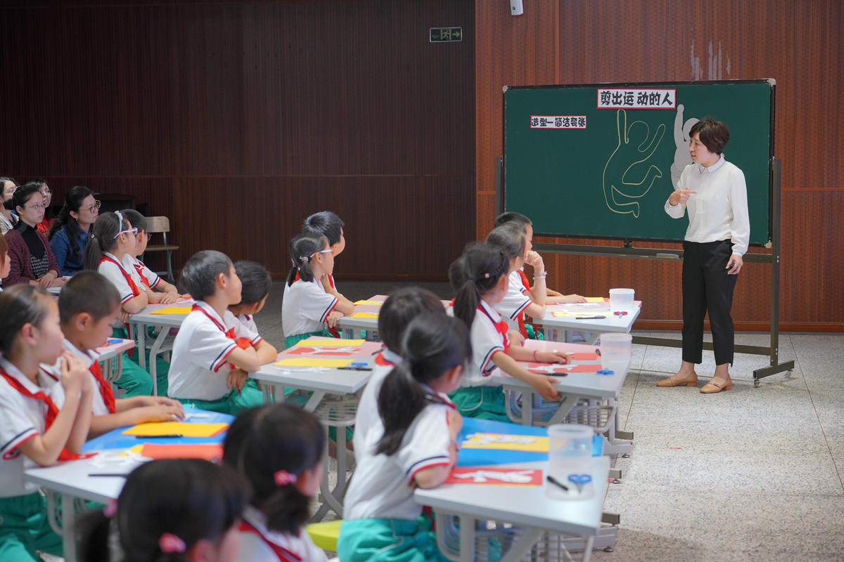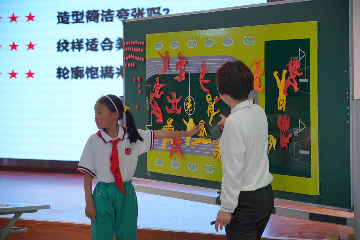 活动分为三个议程,首先是俞宝娟老师的教学展示——《剪出运动的人》,本课引导学生观察、分析运动人物的特点,将生活实际与民间剪纸结合在一起,激发学生对中国传统民间剪纸艺术的兴趣,提升对剪纸艺术的审美能力。这精彩一课,得到了区美术老师一致好评,大家在相互交流中对剪纸教学的单元设计及重难点的把握,有了更深刻的理解。