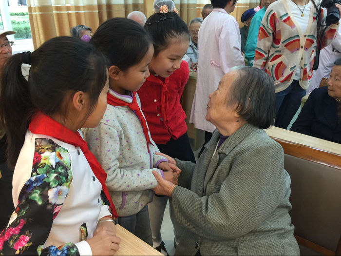学生们来到东林养老院,与老人们欢聚一堂,举行“老少同乐 温暖夕阳”联欢活动;送上精心准备的可口蛋糕、健康水果,用心绘制的节日贺卡;陪老人们聊天、为老人们按摩,扶老人们晒太阳。快乐的护工体验,为孩子们的成长添上了绚丽的一笔。