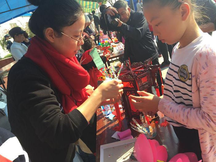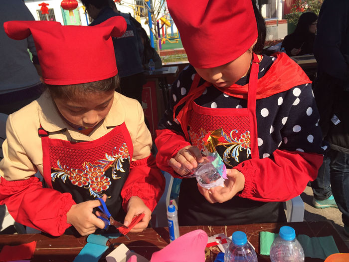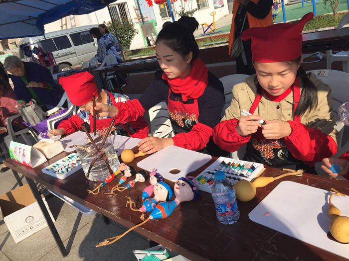 上午在新农社区文化广场,我校3位老师,7位学生带着花灯与葫芦参与了“宅基头咯寻记忆”——金山非遗文化庙会。在此次庙会上非遗项目多种多样,有串珠、丝网花、麦秆画、金山农民画、布贴画、枫泾丁蹄、白米糕等等。每个摊位上都有很多市民流连忘返,尤其是我校的花灯与葫芦画。此次吴淑琼老师带领的花灯学生团队现场制作的是只公鸡灯。市民们都很好奇,驻足围观制作花灯的学生,观看一个塑料瓶是如何变成一只漂亮的公鸡灯的,边看边称赞小朋友心灵手巧。另一边的葫芦画摊位上也聚集了大大小小的孩子们,他们手拿葫芦各个跃跃欲试。夏春美老师带领的葫芦团队们都变成了“小老师”,认真专注的指导着在场的每一位小市民。我想他们今天收获的将不只是这传统的民俗氛围,更是初当“小老师”的成就感与幸福感。