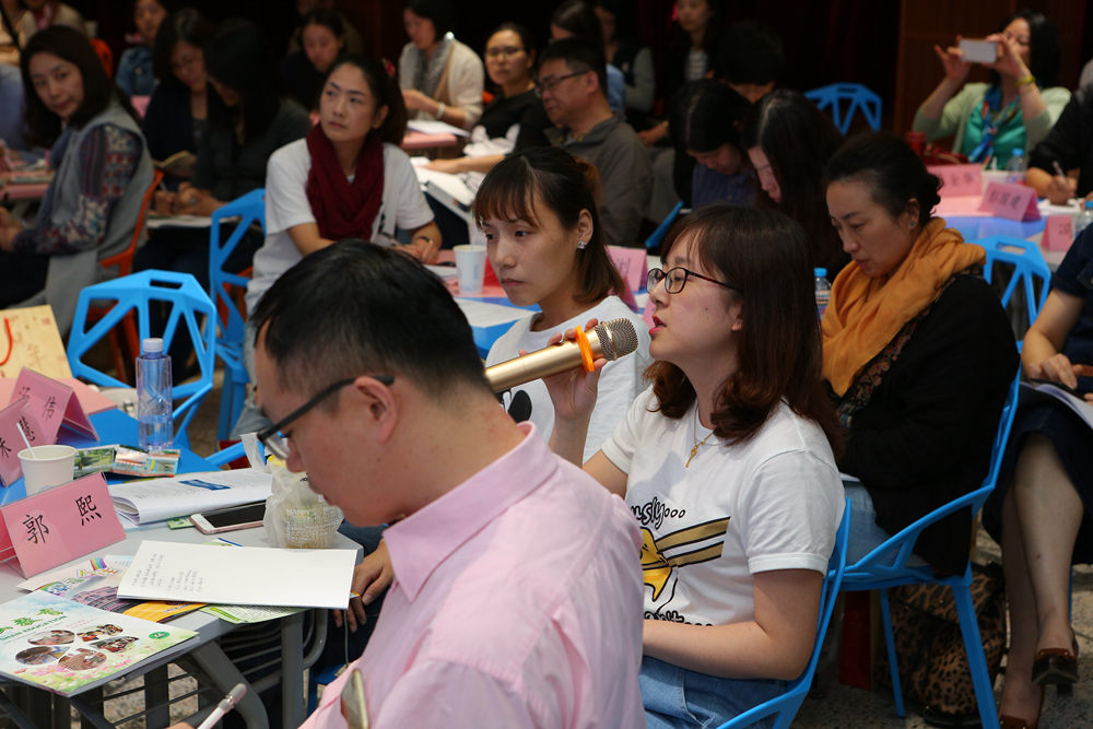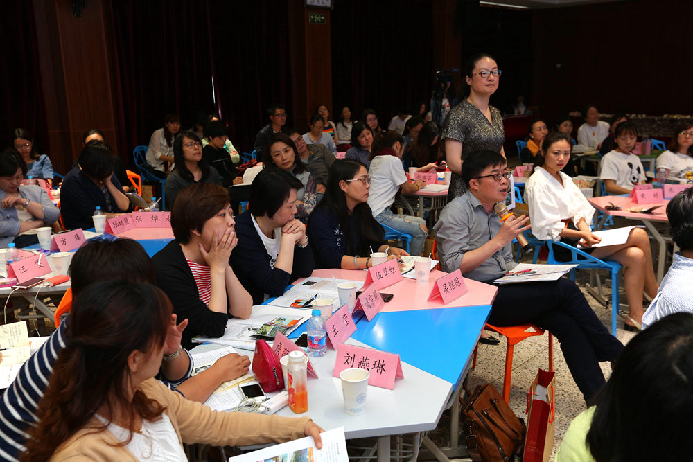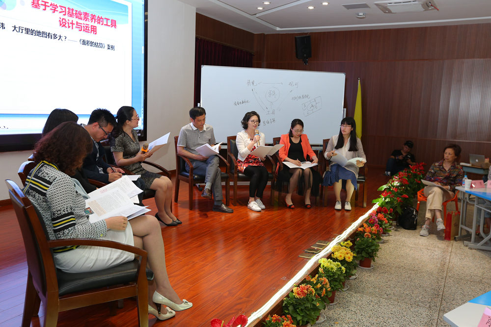圆桌对谈环节由濮玉芹主持,沈兰、王枫、严加平、杨金芳四位项目组专家和金山小学陈晓诚、朱泾二小叶玮、海棠小学沈琪、亭林小学蒋剑四位教师代表,围绕“基于学习基础素养的工具设计与运用”这一主题,在融洽的氛围中,展开学术研讨和交流,就“游戏化学习中情境、规则、工具之间有什么关系?”、“游戏和活动有什么区别?”、“哪些内容适合采用游戏化学习的方式?”等问题进行思维碰撞,也让与会者有了更深刻的认识和思考。