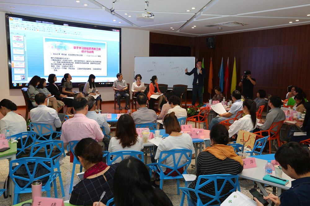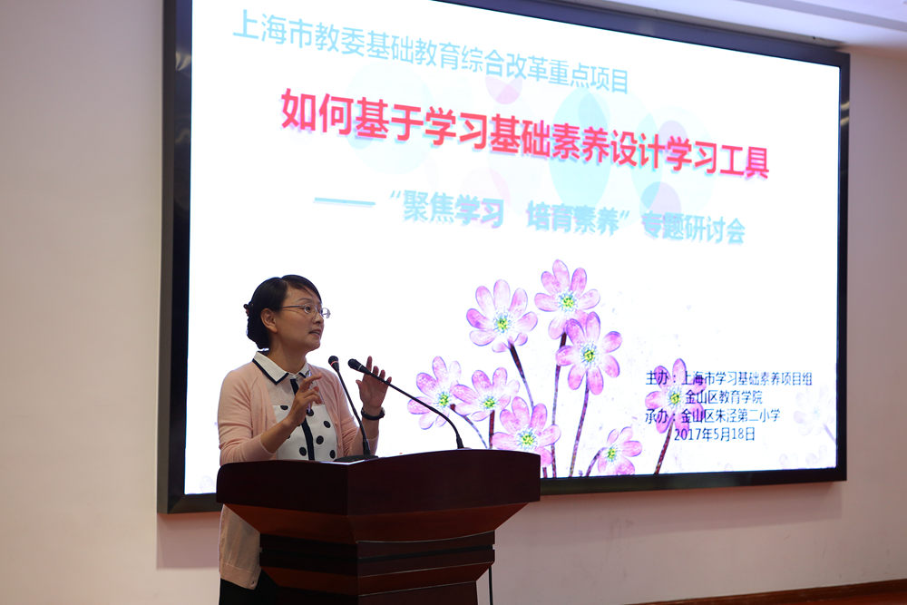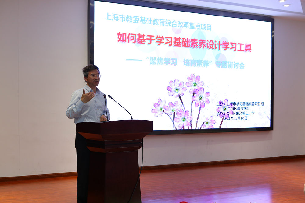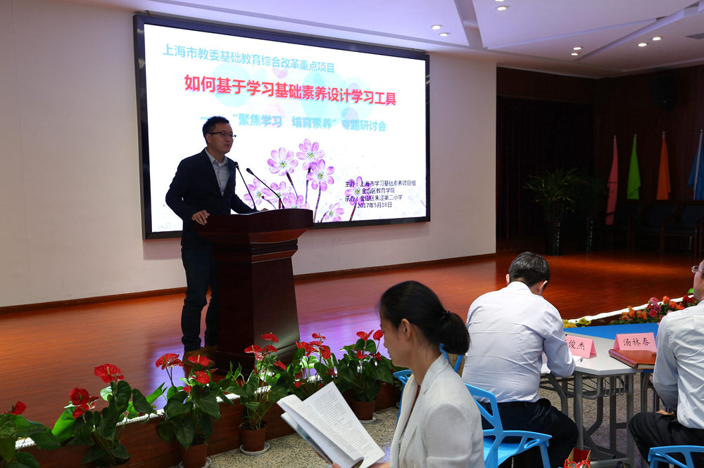 5月18日下午,上海市教育科学研究研究普通教育研究所、金山区教育学院联合主办的“聚焦学习•培育素养”专题研讨会在朱泾二小举行。此次活动聚焦学习工具,围绕“基于学习基础素养的工具与运用”这一主题进行研讨。北京大学教育学院副院长尚俊杰教授,上海市静安区教育学院附属学校校长张人利,上海教育科学研究院普教所所长汤林春、课程室主任夏雪梅博士,市学习基础素养项目组王枫等专家,金山区教育学院院长袁晓英、小学教研室主任濮玉芹,以及各区县项目学校校长、教师代表共80余人参加研讨活动。此次研讨由学习基础素养项目组王枫老师主持。