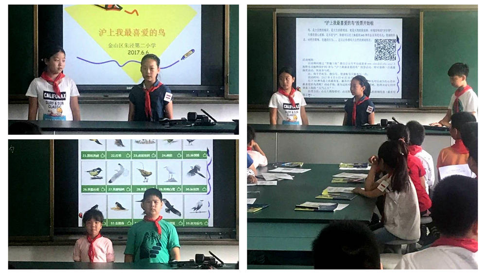 朱泾二小是“上海市野生动物保护特色学校”,积极开展鸟类科普知识宣传活动:在班级中进行“沪上我最喜爱的鸟”主题活动,在学校电脑房,学校领导亲自指导学生进行网上投票评选指导,在班级家长群,进行投票评选发动……以进一步增强青少年学生及广大市民的生态保护意识。