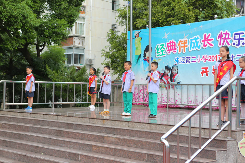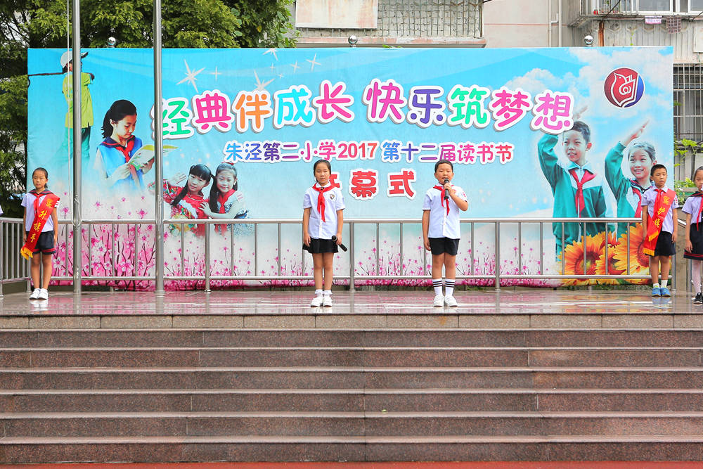 为激发师生读书热情,丰富校园文化生活。朱泾第二小学于今日隆重召开以“经典伴成长 快乐筑梦想”为主题的第十二届校园读书节开幕式。全校一千余名师生参加了开幕式。