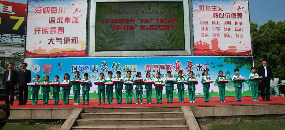4月26日上午,朱泾二小二(2)班的全体小朋友在班主任徐老师和英语教师沈老师的带领下,来到了紫金广场,参加了2018朱泾镇“4.26”知识产权、扫黄打非主题宣传签名活动。本次活动由金山区朱泾镇“扫黄打非”工作领导小组主办,出席的人员有镇党政办、文体中心、综治中心、社区办、派出所等各单位的领导等等。