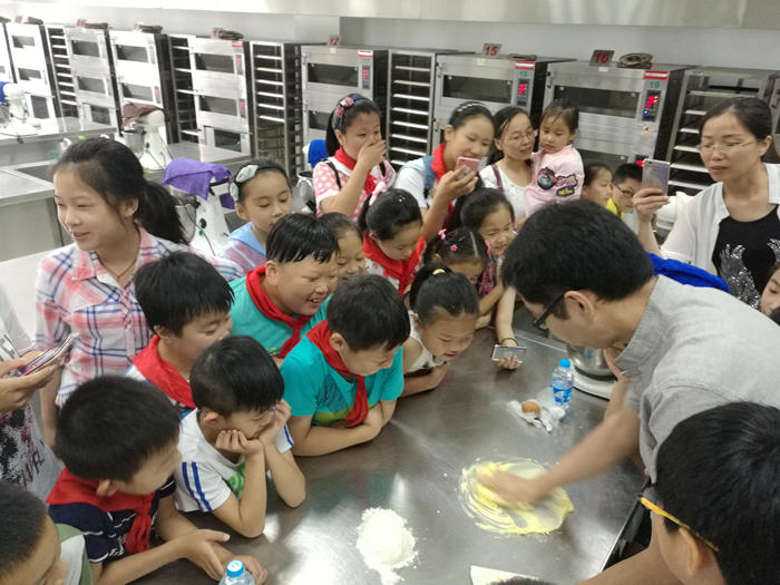 7月13日,朱泾第二小学爱心树小队的10名队员、以及来自其他年级的20名队员一起来到了食品科技学校,参加了暑期西点制作的职业体验。