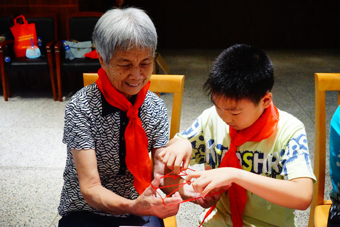 最后到了游戏时间。有趣的击鼓传球,引出了一批“幸运观众”上来表演搞笑的节目。传统的翻线游戏,奶奶们手把手地教着我们怎样翻,怎样钩,其乐融融。快乐的游戏时间让奶奶们忍俊不禁,又让我们哈哈大笑。