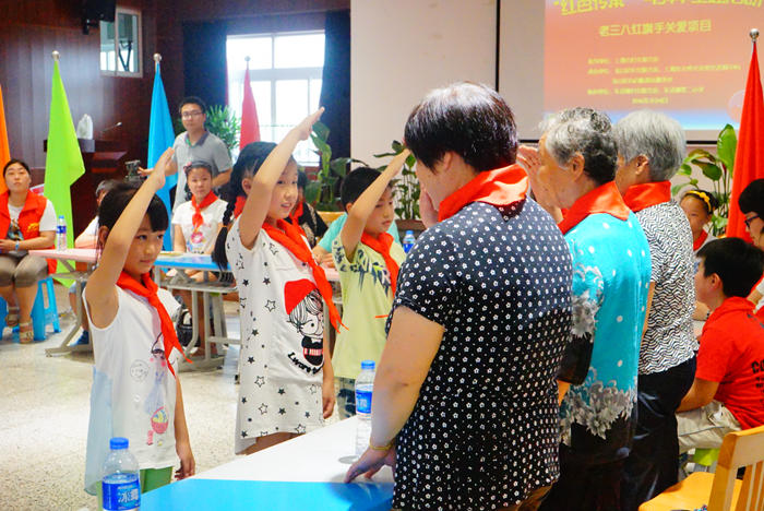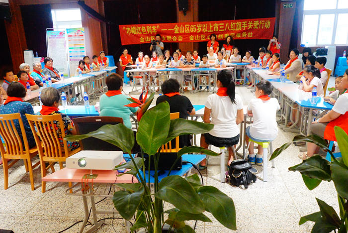 (小记者 沈子涵报道)7月14日下午,虽然烈日炎炎,可烈日阻挡不了我们高涨的热情由金山区妇女联合会组织展开的“巾帼红色列车”——金山区65岁以上市三八红旗手关爱行动在5楼多功能厅举行。10位老三八红旗手奶奶与同学们齐聚一堂,一起倾听她们的故事。