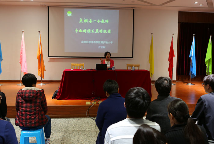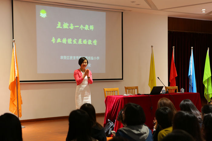 10月31日下午,在朱泾二小多功能报告厅里,奉贤区教育学院附属实验小学的何哲慧校长为朱泾小学与朱泾二小两校教师带来了一场精彩的报告——《点燃每一个教师专业持续发展的激情》。何校长从教院附小的“燃点”教育谈起,定义了教师品质的完整内涵,提出“文化先行、制度引领,助推教师高起点发展”;“精细管理,创新教研,引领教师高效发展”;“激活内需,自我超越,引领教师个性发展”等理念,结合教院附小的丰富活动与做法,让老师们真切感受到了“创新在每一个角落里”!