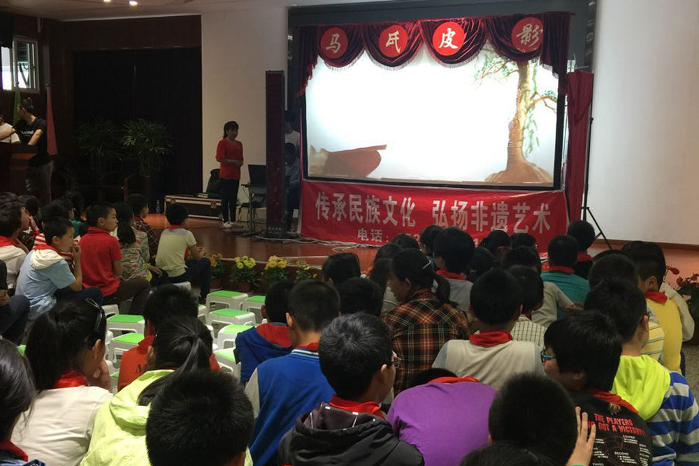 “马氏皮影”团队先为学生介绍了皮影戏的基本知识,学生们知道了皮影人物是由驴皮制成,主色调为 “红、黄、绿、黑、白”五色,人物形象鲜明,制作精美。