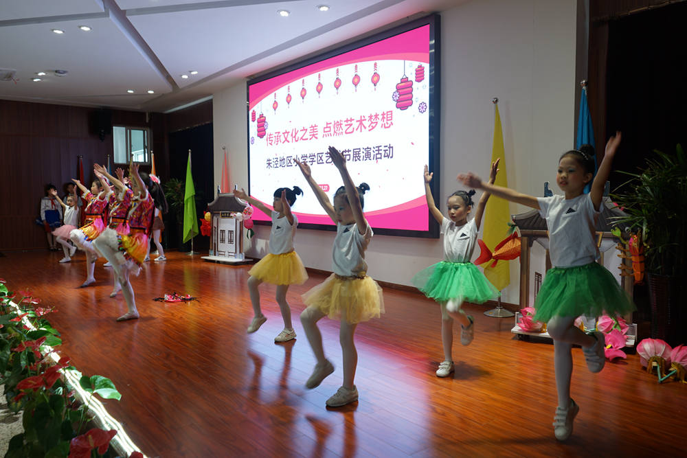 金山区第一实验小学、朱泾第二小学、朱泾小学、新农学校、干巷学校的师生参加了此次展演。活动以传承传统文化之美为主旋律,各校学生民族小乐团、舞蹈队、朗诵队各展风采。新农学校唱京剧脸谱,朱泾小学的舞蹈“马兰谣”,朱泾二小歌舞剧“小花灯儿亮起来”、第一实验的古典诗文吟诵、干巷学校的长笛合奏等赢得现场阵阵掌声。