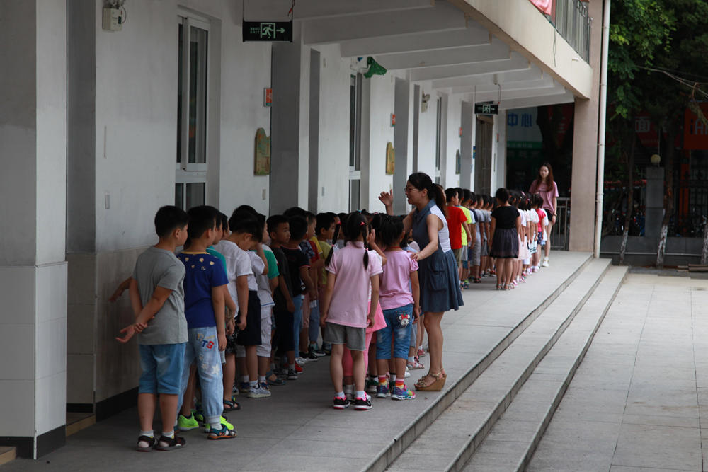 8点30分,各班在班主任老师的安排下,小朋友排队、就坐。在这里,他将认识新同学,新老师,开始新生活。随后,语、数、英各科教师分别进班和小朋友见面、上课。课上,大家在老师的带领下了解七彩二小学习、活动的各项常规、要求;课后,大家和老师交流、沟通,和同学聊天、游戏。