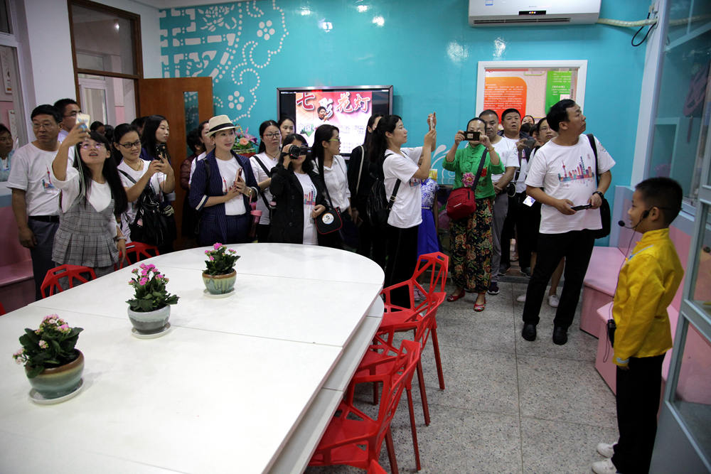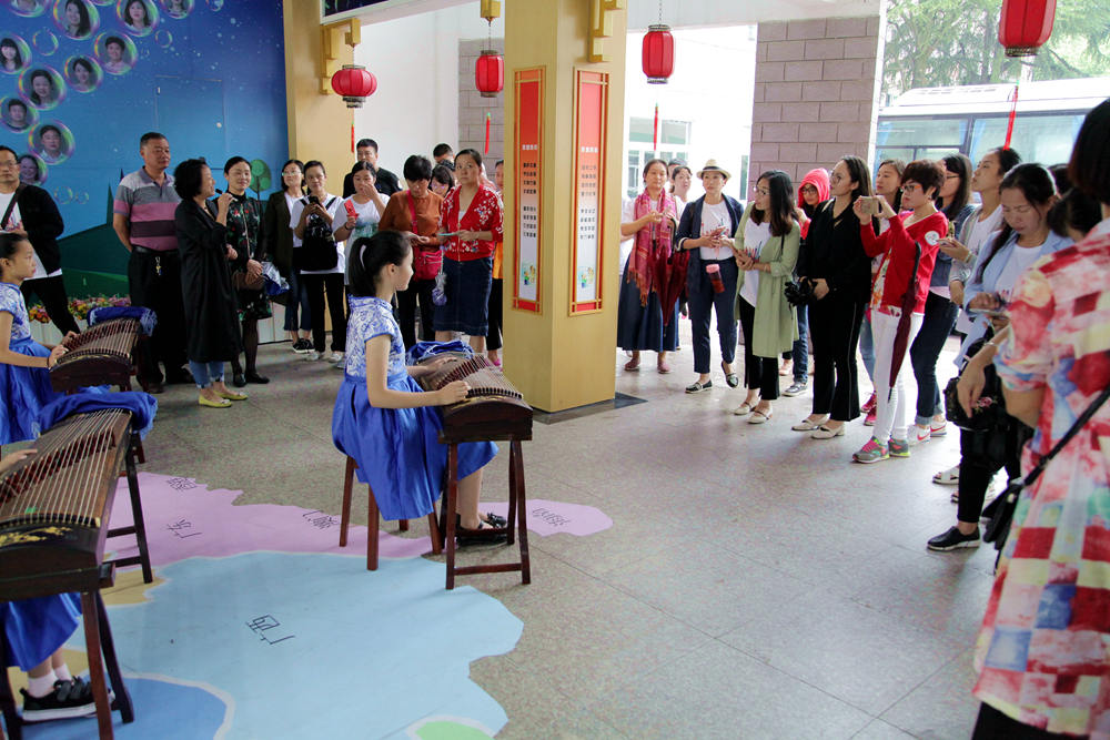 交流团先欣赏了学校古筝坊演奏的《茉莉花》,在悠扬的乐声中参观了花灯大厅。又在小导游的带领下参观了花灯室,造型各异、颜色艳丽的花灯吸引了大家的目光,点火后可以旋转的“走马灯”引来了大家的啧啧赞叹。随后交流团在多功能厅欣赏了学生的两个特色节目,锡剧《双推磨》和花灯舞《共产党幸福领路人》。艺术分管教导袁寒老师介绍了学校艺术教育的概况,一校一品的特色形成过程。最后,河南省一校一品研究指导中心的带队人员向学校赠送了旌旗、吉祥物等,并对学校的办学特色赞不绝口。