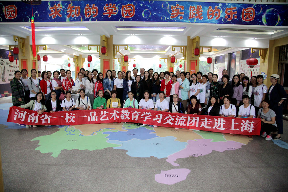 今天下午,河南省一校一品艺术教育学习交流团72人一行,冒着细雨霏霏来到金山区朱泾第二小学参观学习。