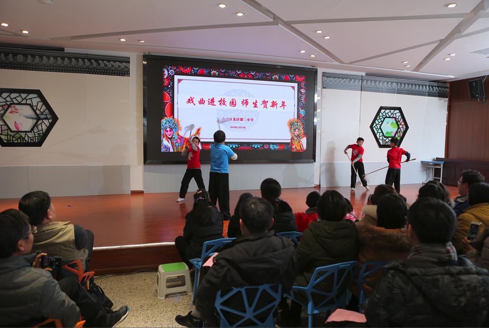 1月24日是腊八节,在这别具意义的一天,我校开展了以“戏曲进校园 师生贺新年”为主题的迎新活动。活动由校工会策划组织,全校教职员工以及学生家长代表共同参加,可谓其乐融融,亲如一家。