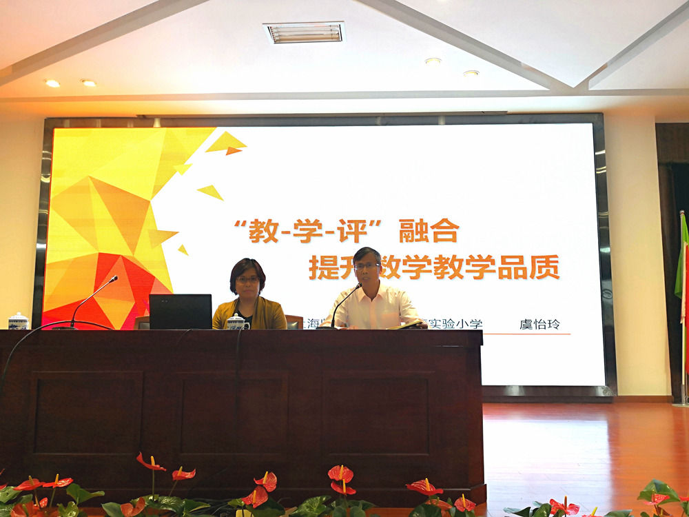 今天下午,我校有幸邀请到上海市特级教师、上海师范大学附属卢湾实验小学虞怡玲校长,给数学组的老师们带了一场精彩的培训——《“教-学-评”融合 提升数学教学品质》。并盛情邀请实验一小、朱泾小学、枫泾小学、新农学校以及松隐小学共计六十位左右数学教师,参加了本次培训活动。